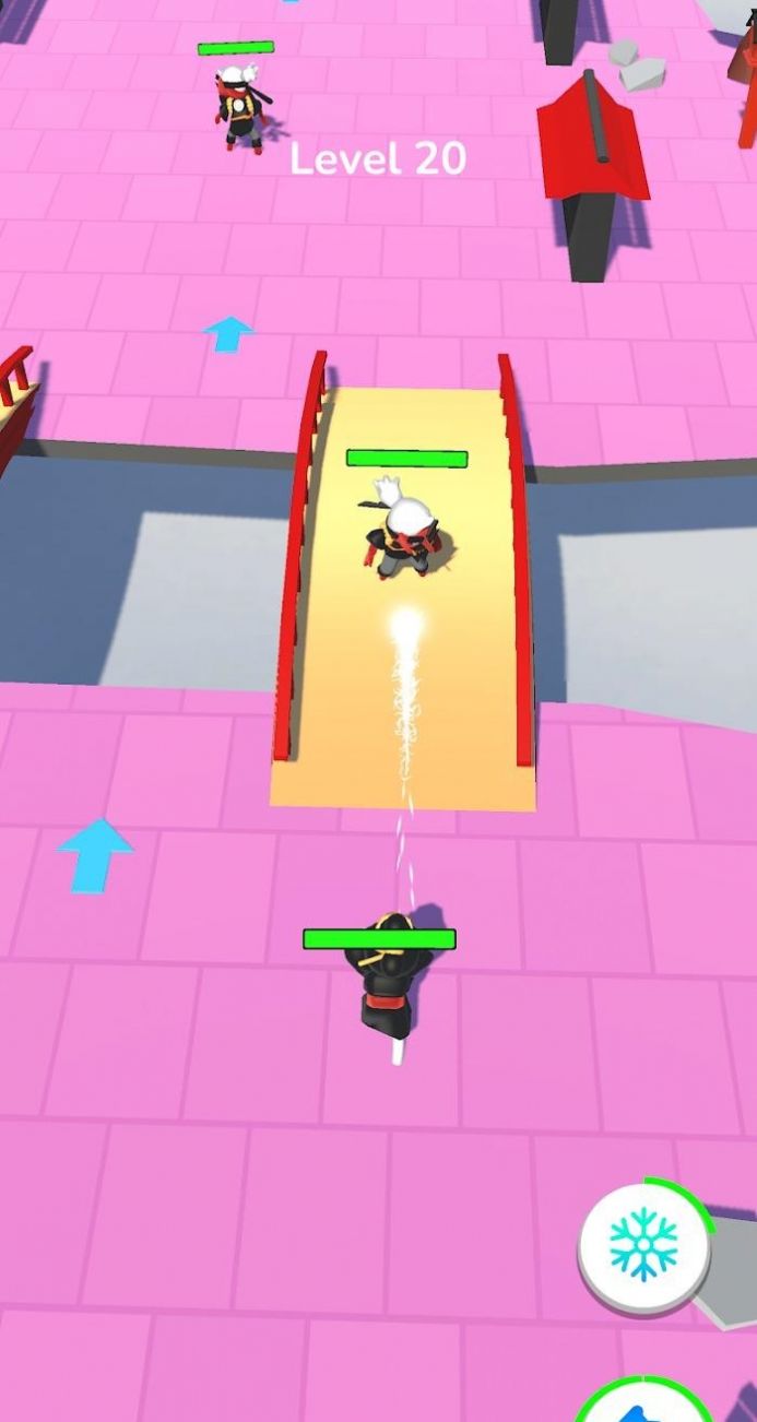 1、随意滑动屏幕寻找目标,避开对手的飞镖,而且同时是要攻击对手。