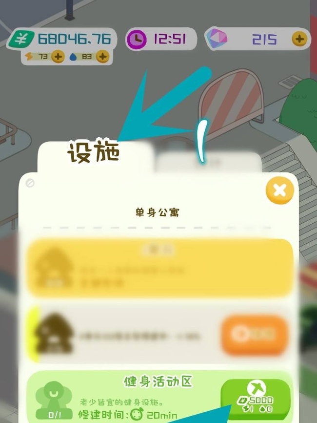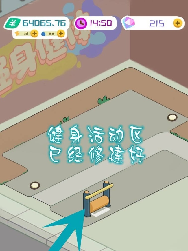 1、玩家进入游戏后,点击健身活动区,点击使用钞票购买健身活动区。