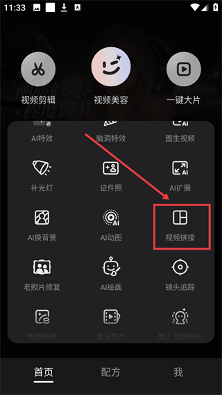 1、在功能页面找到【视频拼接】选项并点击,进入视频拼接的编辑界面,准备进行视频组合操作哦。