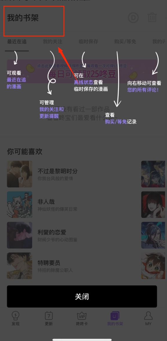 4、通过我的书架功能可管理已收藏作品,应用会及时推送喜爱漫画的更新通知,确保用户不会错过任何精彩内容。