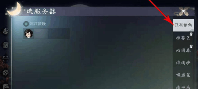 1,进入一梦江湖登录界面,点击区服查看已有角色,看是否有以前已有角色。