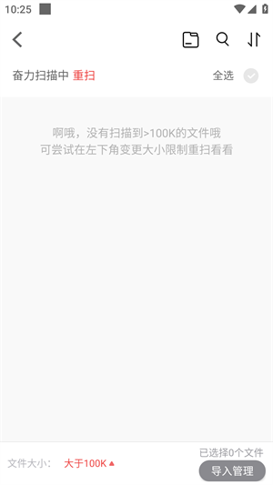 4、一键对于本地文件进行扫描,选择需要的文件进行导入,还可以对于文件进行搜索、排序等操作。