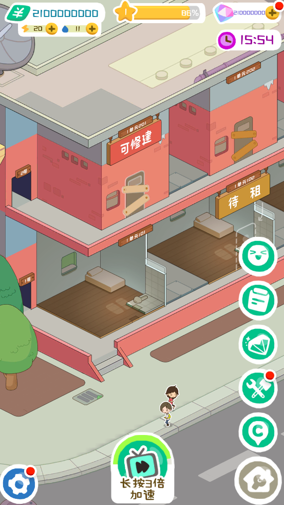 1、我要当房东是一款简单的操作模拟经营游戏,成为这里的租客来挑战游戏。
