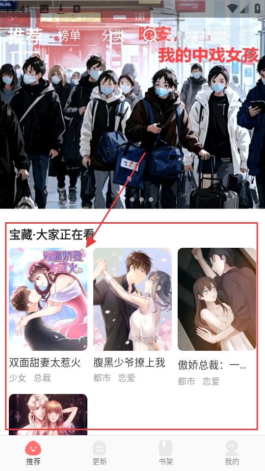 1、在推荐页看到【双面甜妻太惹火】,别犹豫,赶紧点击进入,开启精彩阅读之旅吧。