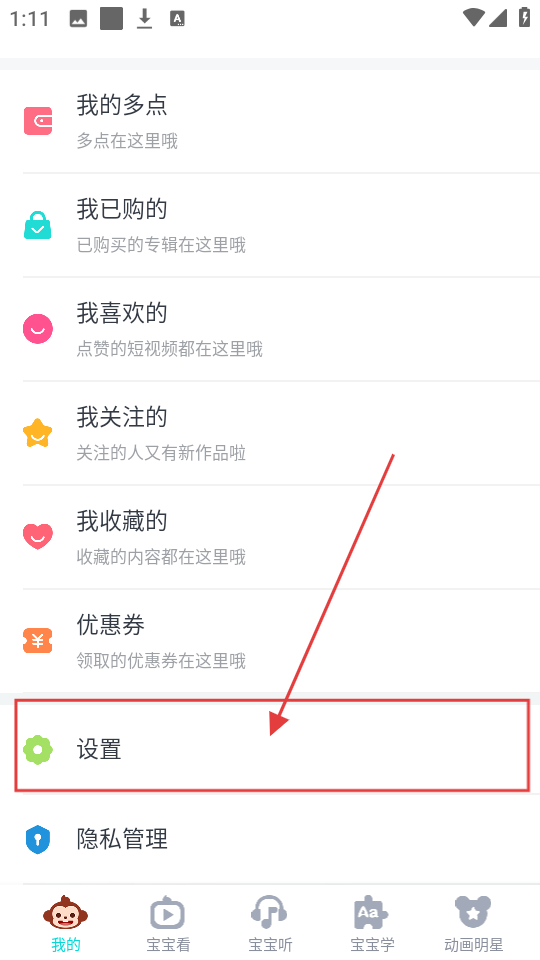 1、在“我的”页面找到【设置】选项就点击进入哦,这是设置功能的第一步呢。