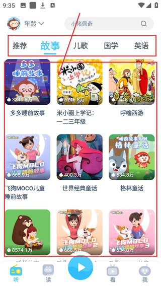 3、每日推荐,实现按年龄、按主题推荐不同故事和绘本,这样的学习感受非常好。