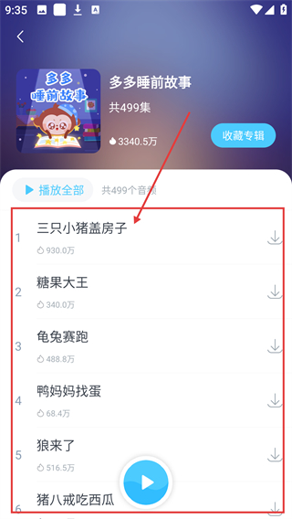 2、进入专辑详情后,能看到故事列表比如【三只小猪盖房子】,点对应的故事就能开始播放啦。