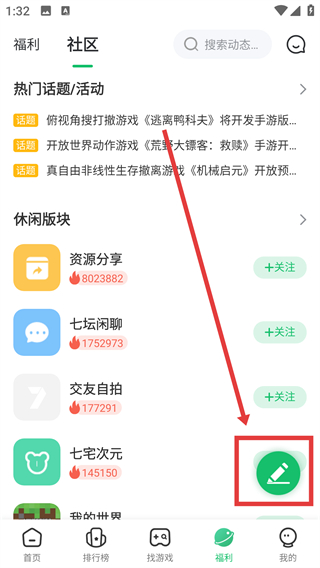 2、进入社区页后点右下角的编辑图标,能打开板块选择界面,可挑选合适的板块发布内容哦。
