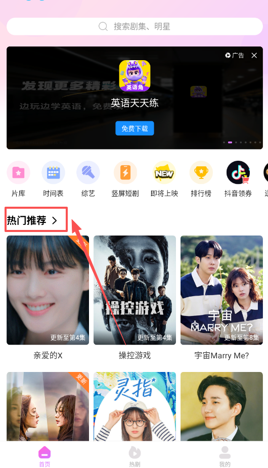 2、找剧不用愁,如果首页“热门推荐”里的“操控游戏”不合口味,总有新发现。