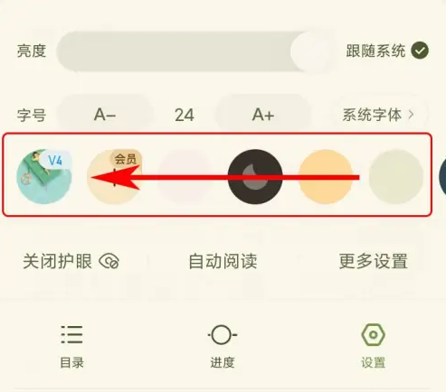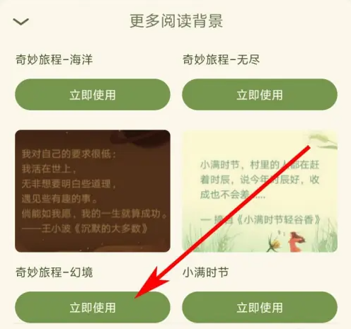 6、打开阅读背景菜单,点击您喜欢背景下面的“立即使用”按钮。