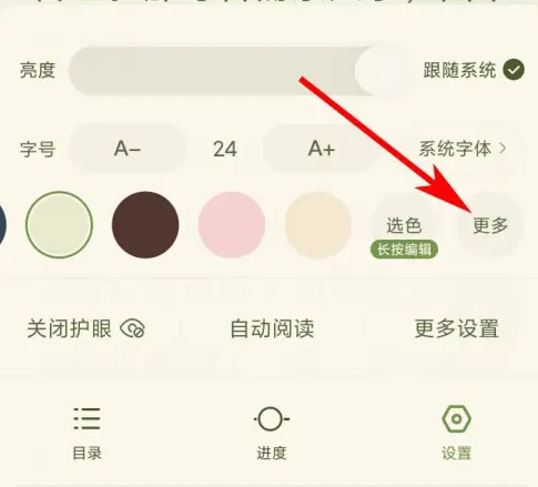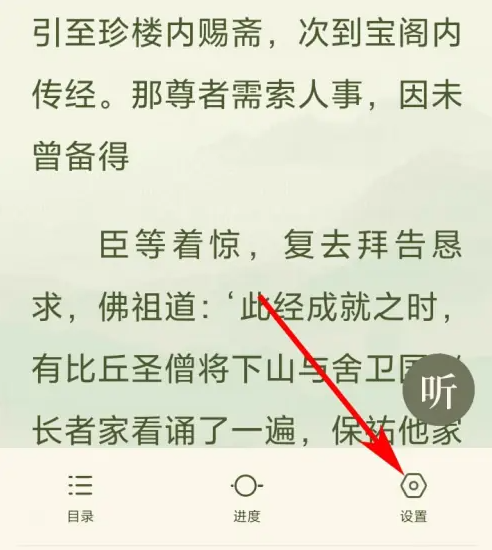 4、这时会打开QQ阅读工具栏,点击底部的设置按钮。