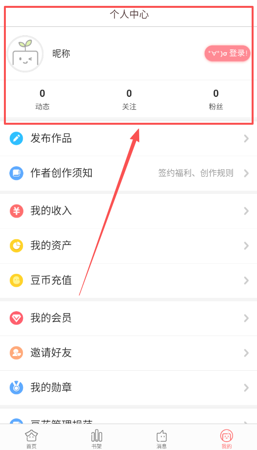 3、在“个人中心”,你可以设置昵称和查看动态,还能了解作者创作须知和签约福利,能让你和朋友一起享受阅读乐趣呢。