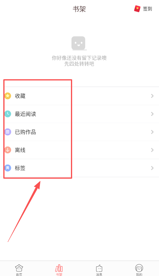 2、找到喜欢的小说后,记得加入书架方便下次阅读,进入“书架”页面,如果还没内容,这样就不会错过追更啦。