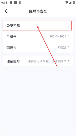 4、进入账号与安全页面,点击【登录密码】选项,即可进入密码管理界面,修改账号的登录密码呀。