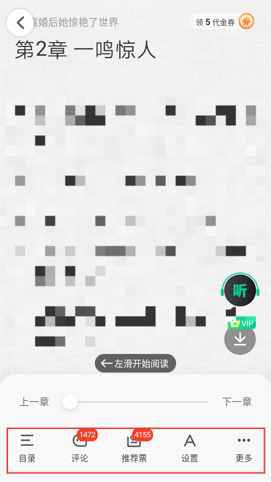 4、进入章节阅读界面,下方有【目录】【评论】等功能,要是想切换章节或调整设置,点它们就行啦。