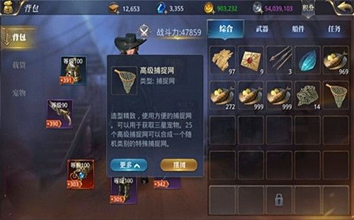 3.捕捉操作:需要发现该宠物对应的发现物后才能捕捉,野生宠物出现在对应探险场景中,船长要前往使用捕捉网,使用时动物会逃跑,船长需要追赶上并点击捕捉网使用按钮。