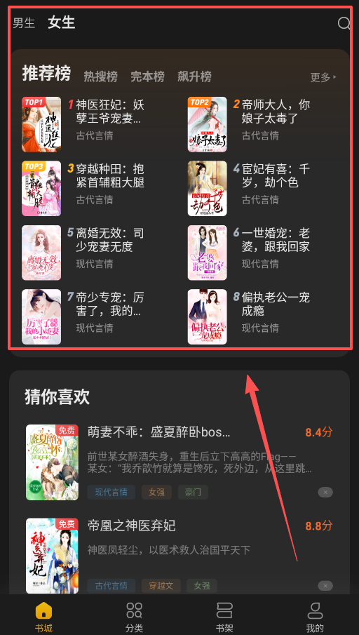 3、这里的内容都是自由的点击切换,让你去选择不同的主题小说很详细的内容。