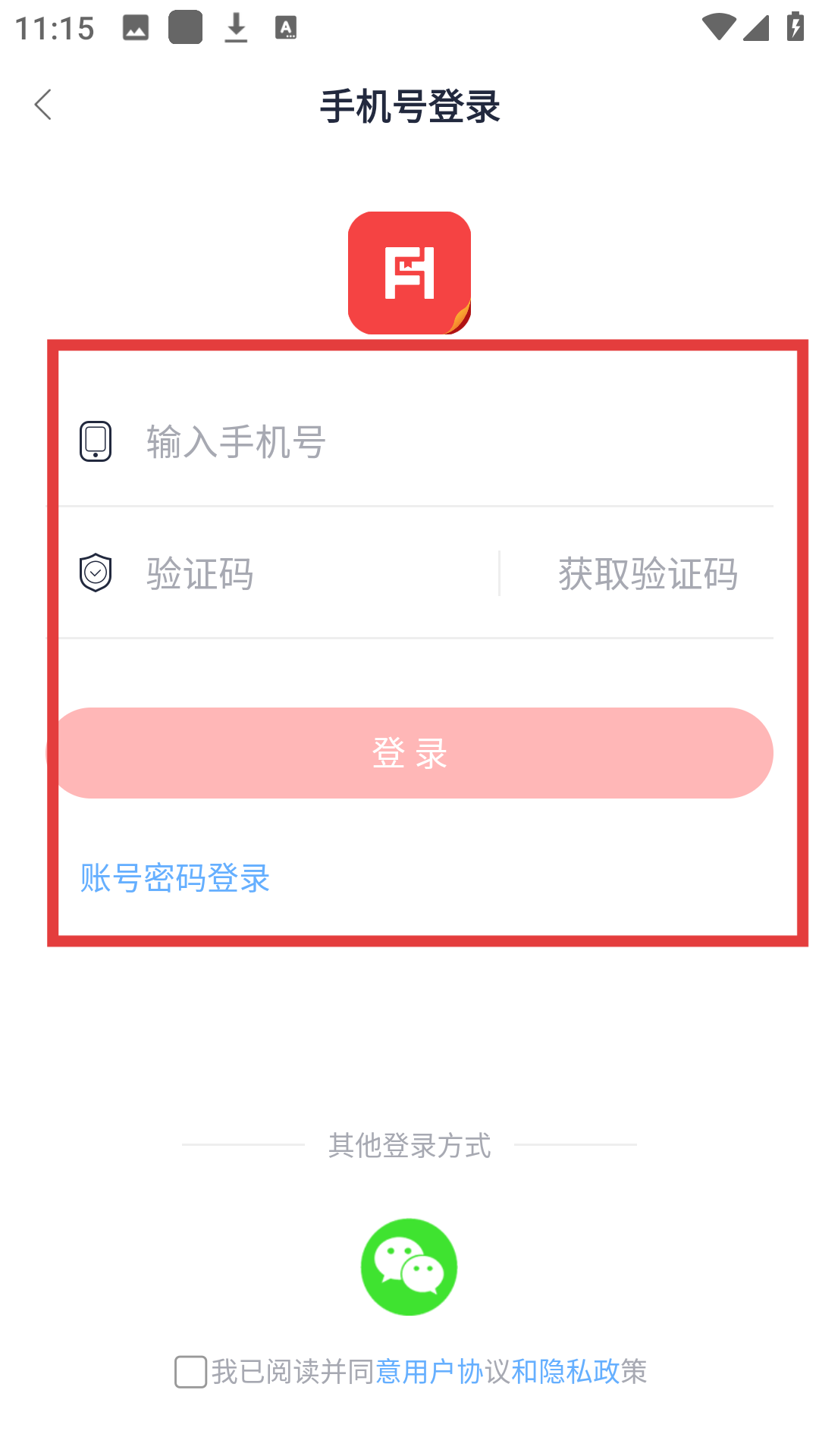 3、在登录页面输入手机号和验证码,点击登录可完成账号登录哦。