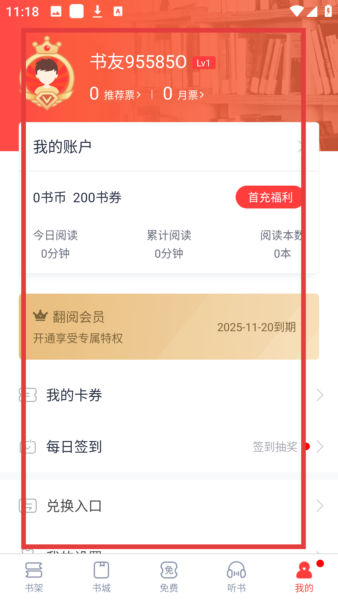 4、登录后个人中心会显示账号信息,还能查看书币、书券等账户情况啦。