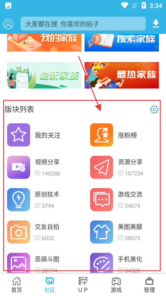 2、进入社区页面后,可浏览版块列表,选择感兴趣的版块进入哦。