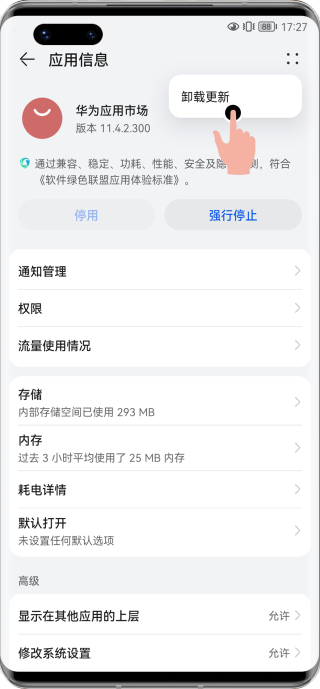 ● 将应用市场卸载更新。(非华为设备参考:非华为手机上的应用如何卸载更新/恢复出厂版本)