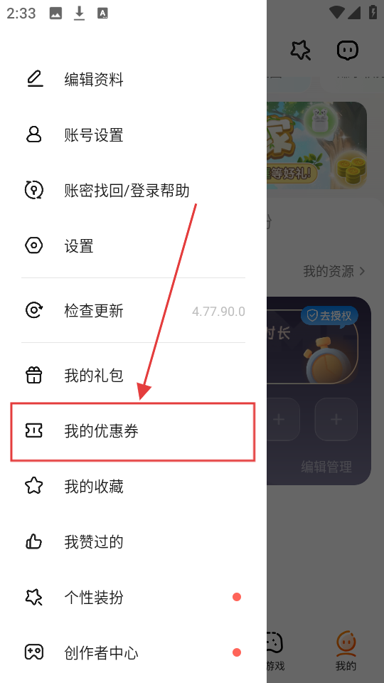 2、在展开的菜单里,找到【我的优惠券】选项,点进去就能查看和管理优惠券啦。