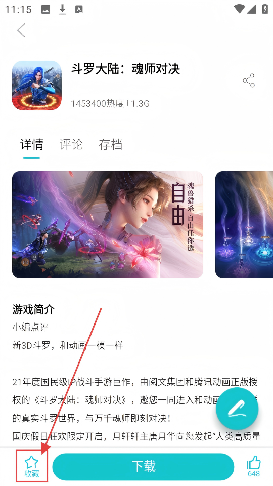 3、进入《斗罗大陆:魂师对决》详情页,看到左下角【收藏】按钮,点击能把游戏加入收藏啦。