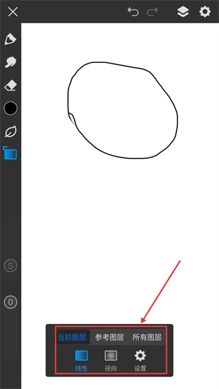 3、在渐变设置界面选择【线性】渐变类型,还能切换图层范围,调整渐变的应用区域哦。