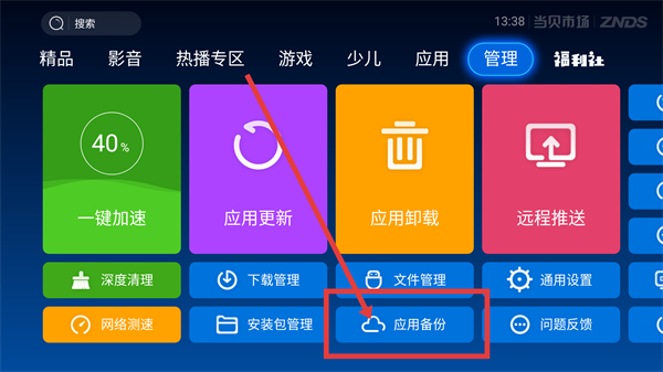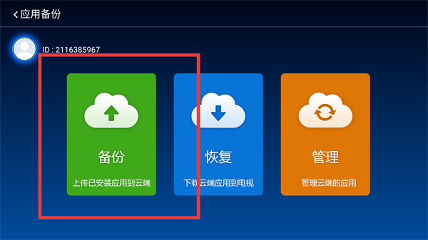 2、进入管理页后点击【应用备份】选项,就能进入应用备份界面,处理应用的云端备份相关操作哦。