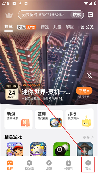 1、进入游戏中心后点击底部【我的】按钮,就能进入个人中心页面,查看账号相关信息啦。