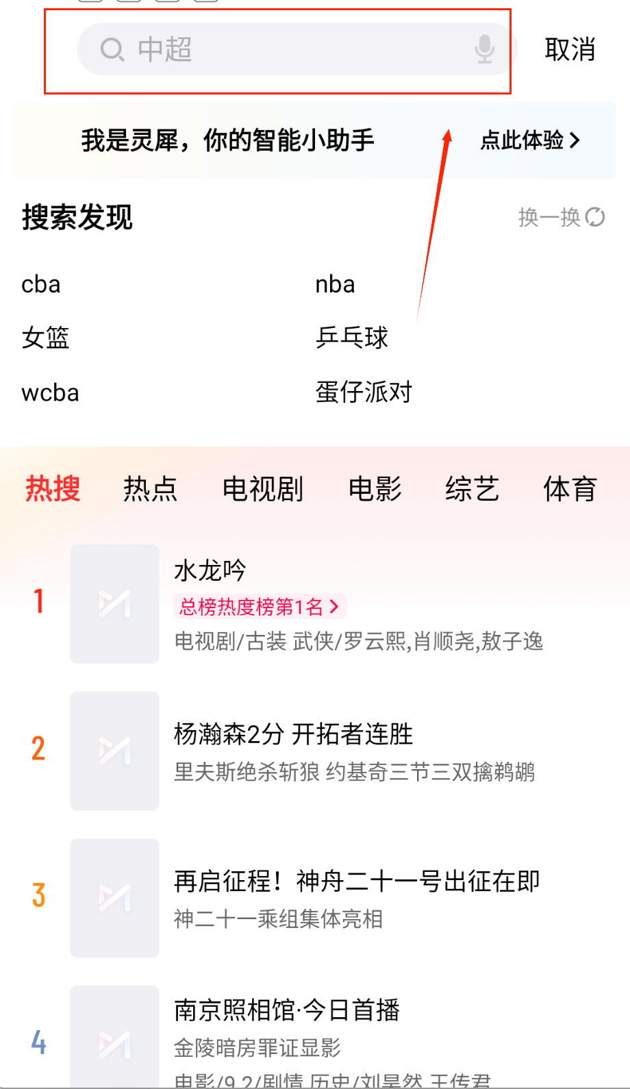 1、打开软件后先熟悉首页布局,顶部搜索栏可以输入任意关键词,比如“水龙吟”或热门事件,能快速找到相关资讯和视频内容呀。