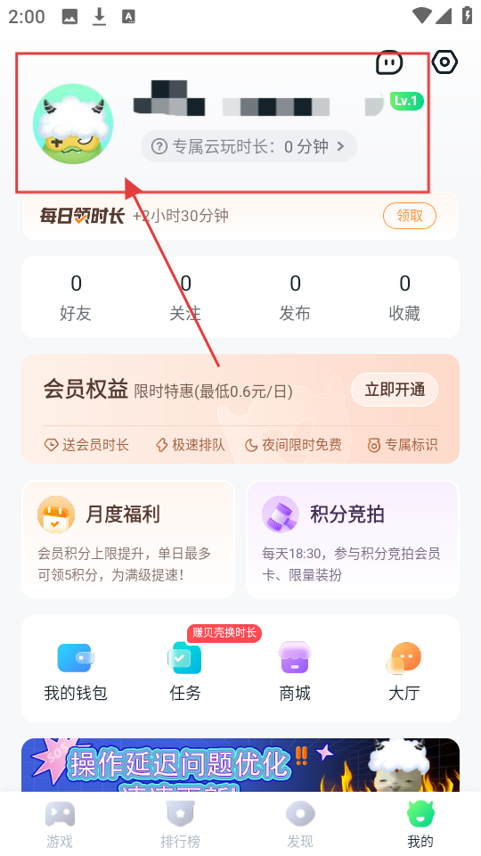 1、打开游戏应用首页,能看到各类游戏推荐,咱们点击右下角【我的】,进入个人页面开始设置吧。