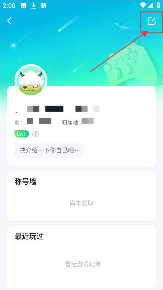 3、进入个人资料页面后,看到右上角的编辑图标,咱们点击它,就能编辑完善个人资料内容啦。