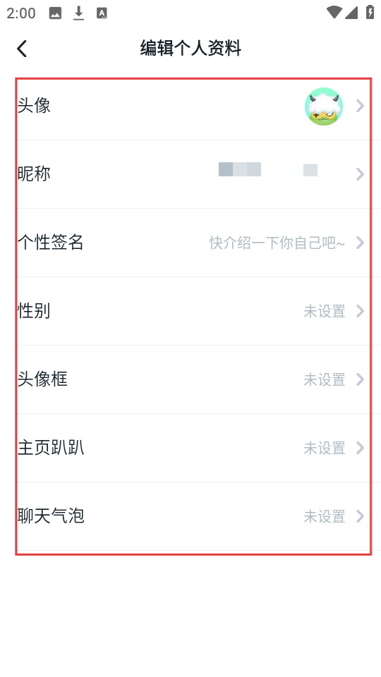 4、来到【编辑个人资料】页面,这里可以设置头像、昵称等好多内容,根据喜好去编辑完善吧。