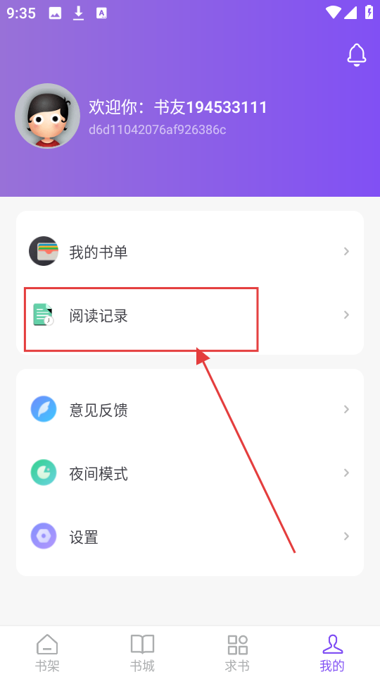 2、在个人中心页面,找到【阅读记录】选项并点击,进入阅读记录页面哦。