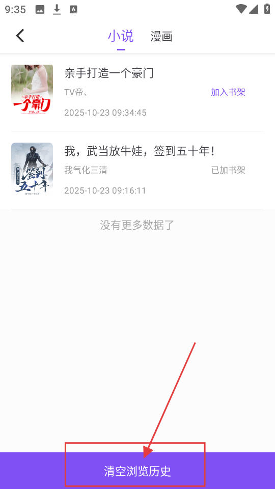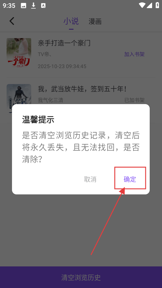 3、在阅读记录页面,点击【清空浏览历史】按钮,弹出确认提示框呢。