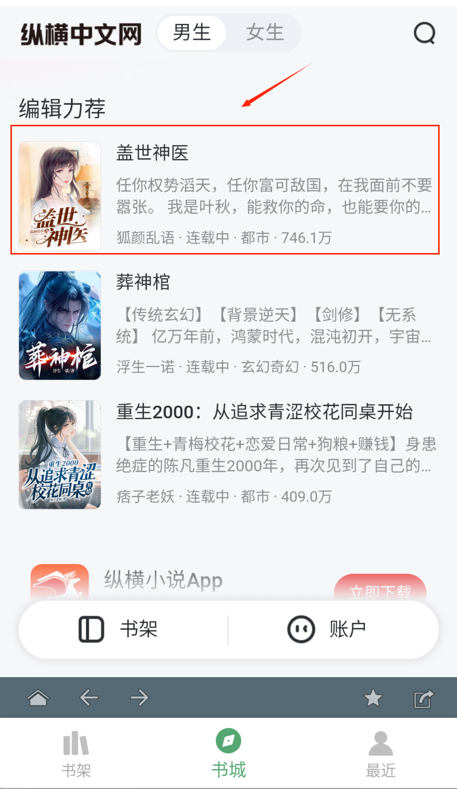 2、在这里可以很容易的看到各种小说和书籍,可以给用户带来很多便利追书。