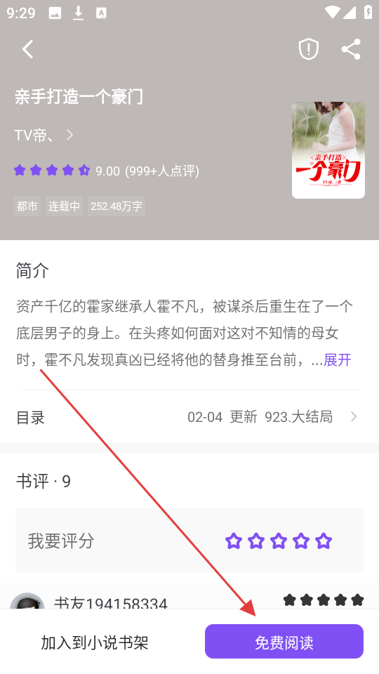 1、看到感兴趣的小说比如【亲手打造一个豪门】,就点击【免费阅读】按钮,开启阅读之旅吧。