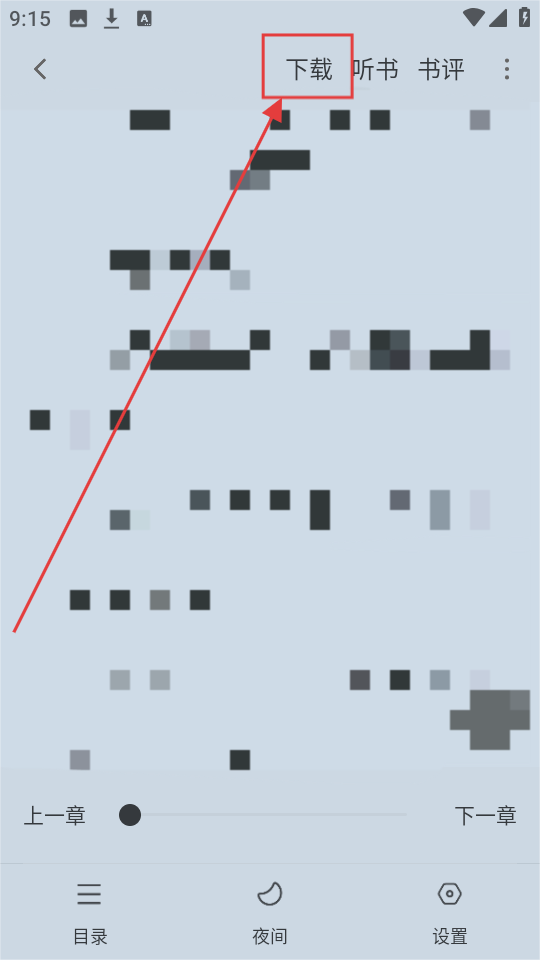 1、在小说阅读页面,点击上方【下载】选项,准备缓存小说章节啦。