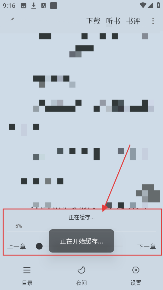 4、点击后,页面显示【正在缓存...】,等待缓存进度完成,即可离线阅读缓存的小说章节啦。