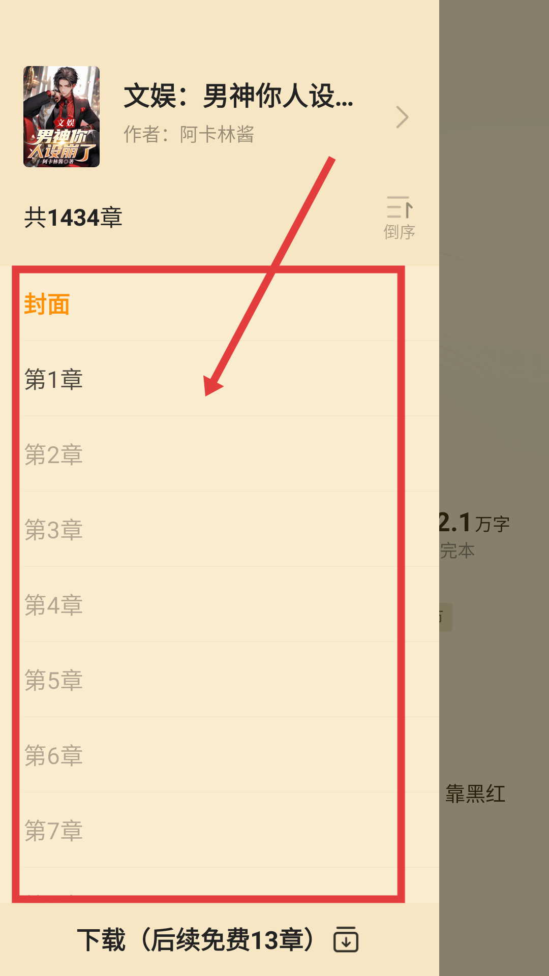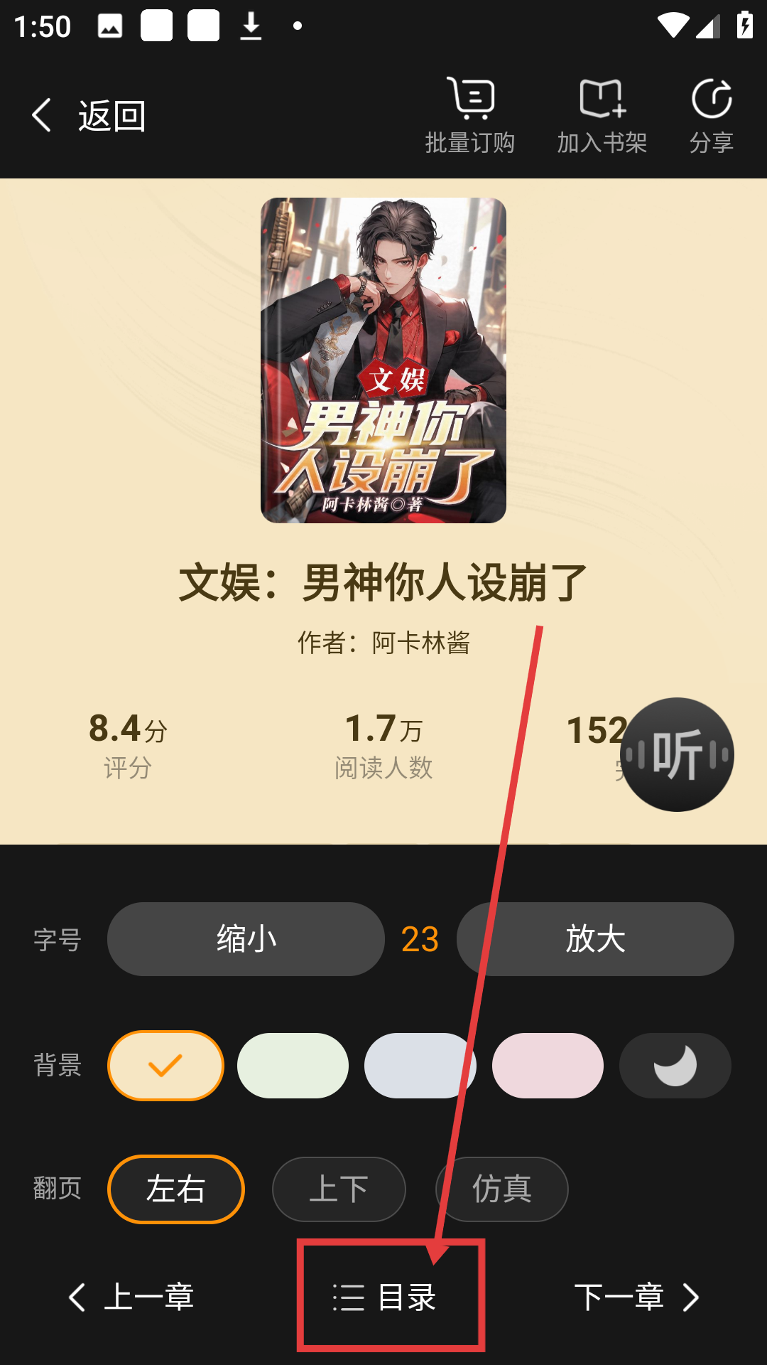 2、进入小说详情页后,点击【目录】,可查看小说章节列表哦。
