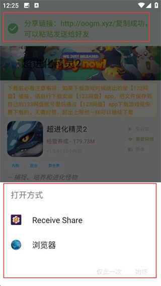 3、分享后会复制链接,还会弹出【打开方式】选择框,可按需选对应的应用来打开链接呀。