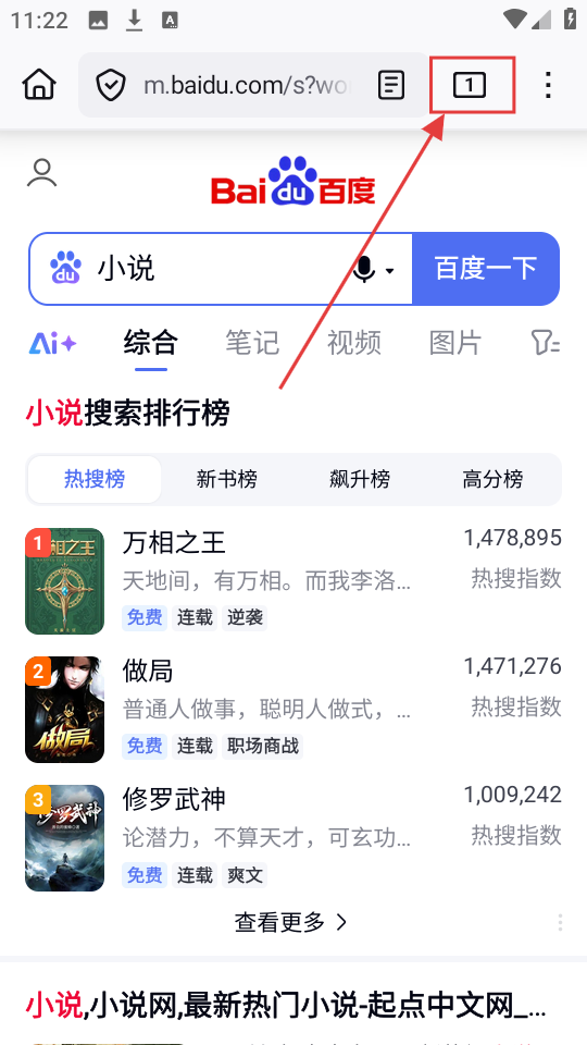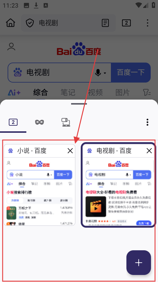 4、这样操作后,就能同时打开多个标签页,像【小说-百度】和【电视剧-百度】,方便切换浏览啦。