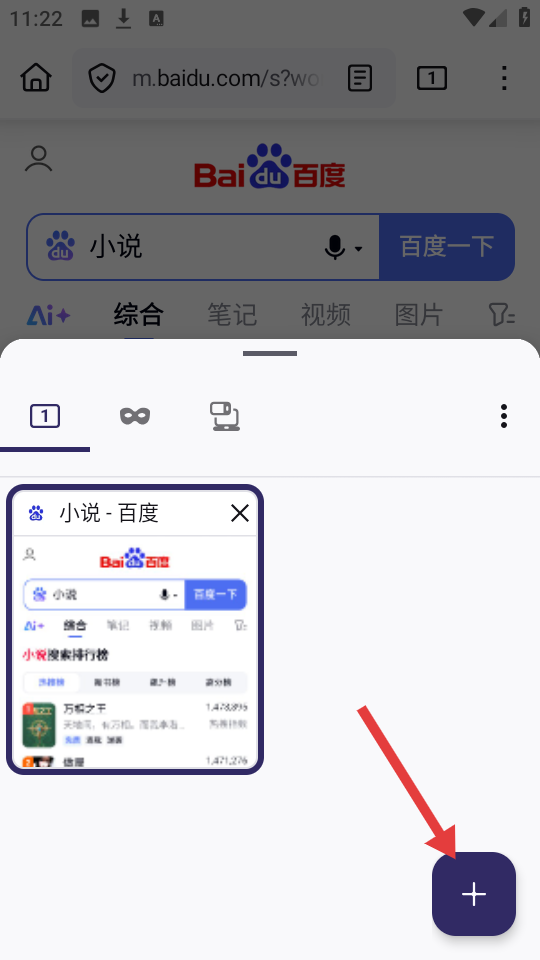 2、查看标签页时,看到右下角的“+”号按钮,点击它就可以新建一个标签页啦。