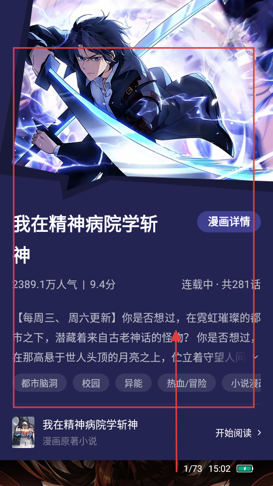 4、进入漫画阅读界面后,只需轻轻向上滑动屏幕,就能流畅地查看后续的漫画内容啦,超轻松的哟。