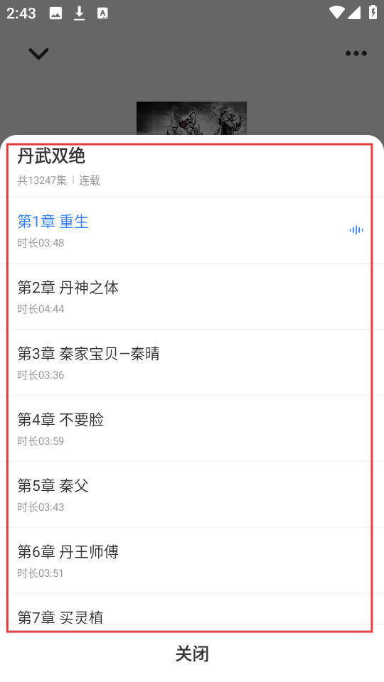 4、在集数列表中选择想听的集数,就能收听对应的有声书内容,享受听书时光啦。
