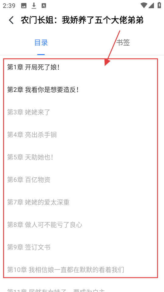 3、在目录页面,可选择章节标题,进入对应章节阅读啦。