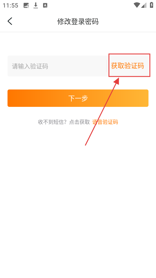 3、在修改登录密码页面,点击【获取验证码】,输入验证码后可进行下一步操作啦。