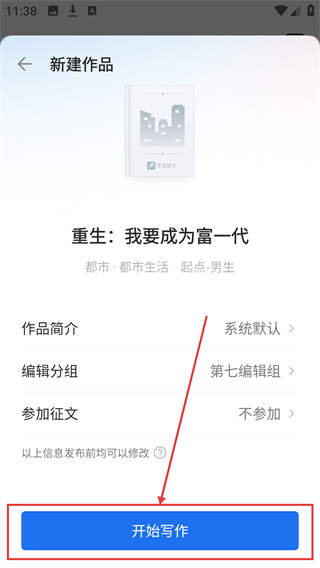 4、配置好作品信息后,点击【开始写作】按钮,就能进入作品的正文创作界面啦。
