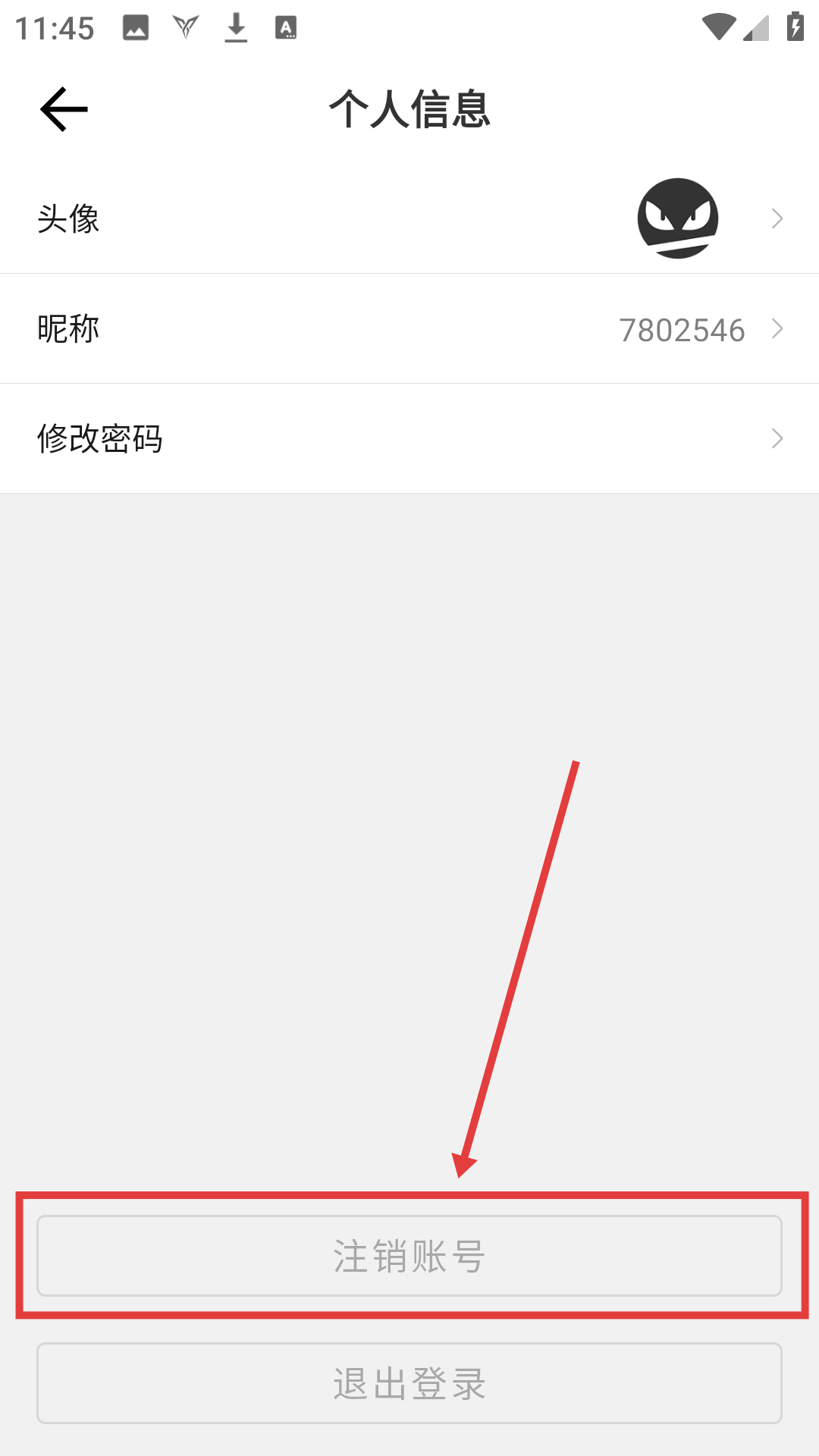 2、在个人信息界面点击【注销账号】,进入注销账号界面,准备注销账号啦。